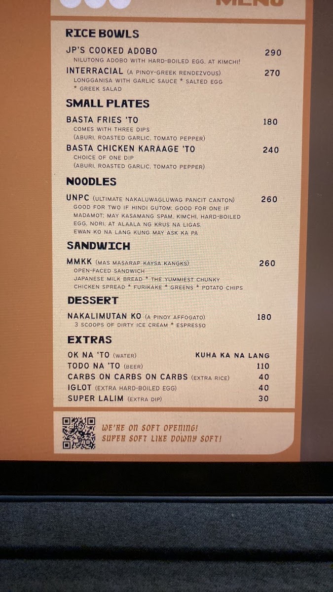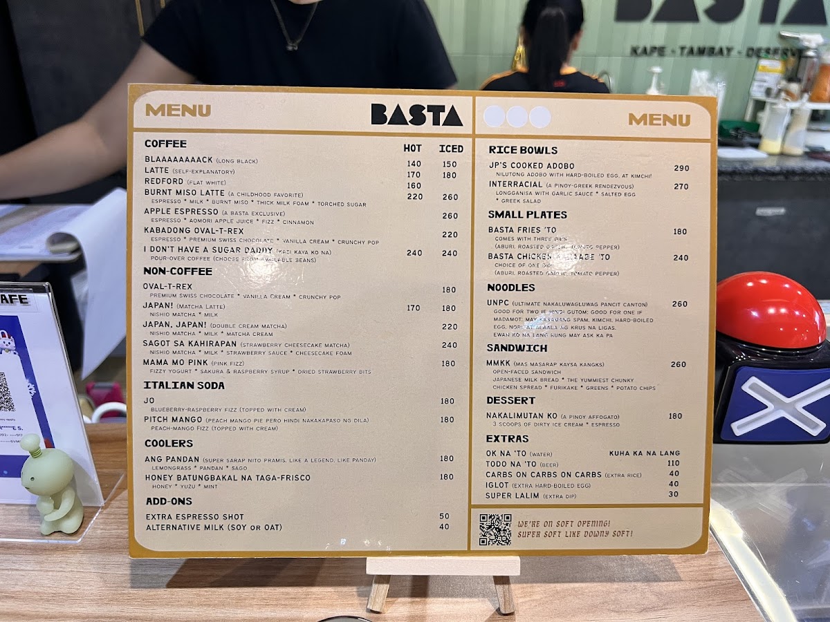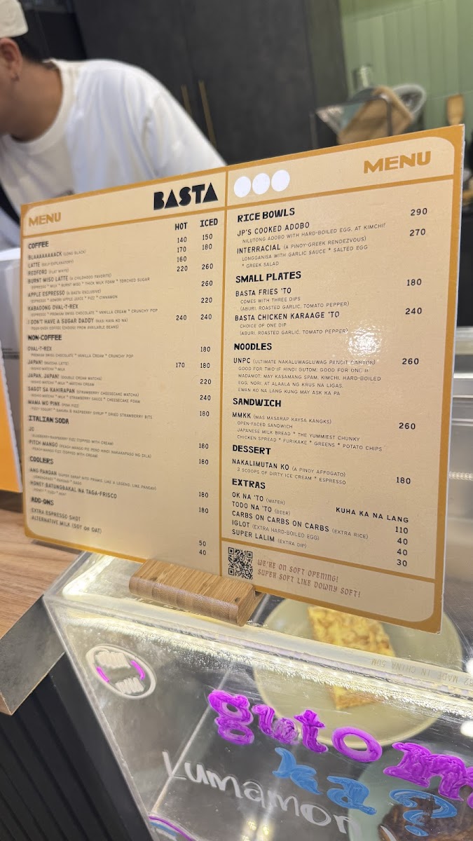 Welcome to Basta Cafe, the latest haven for food lovers in Quezon City! With its quirky, welcoming vibe, this cafe perfectly melds delicious food and creative drinks. The standout items on the menu include the MMKK Mas Masarap Kaysa Kangks, an open-faced sandwich featuring airy Japanese milk bread topped with a luscious chunky chicken spread, furikake, and fresh greens, all for ₱300.00. If you're craving something heartier, try the Yummiest Overloaded Ha Hotdog Premiumer, packed with ethically sourced ingredients and indulgent toppings.